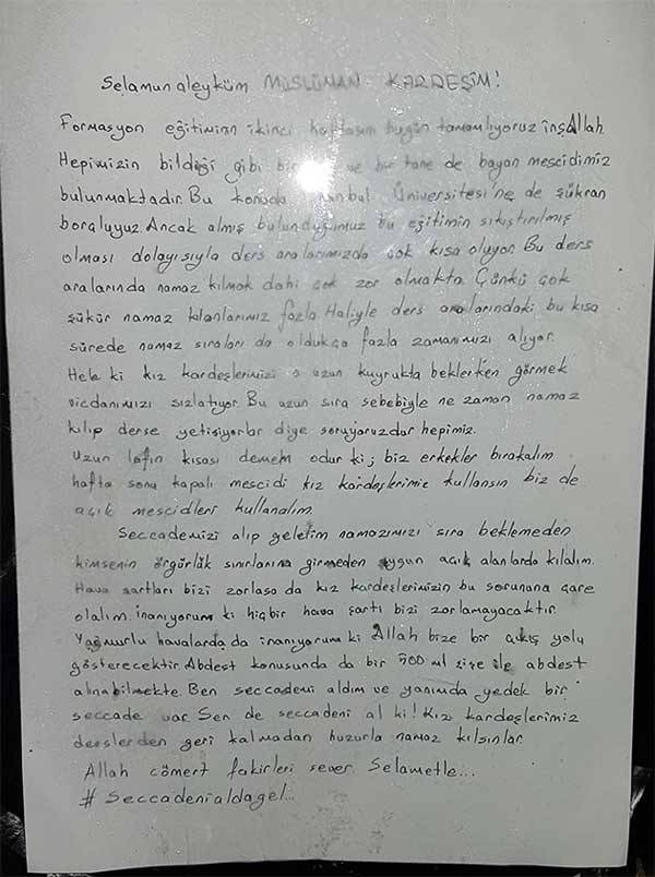 İstanbul Üniversitesi Beyazıt Kampüsü'nün içindeki mescidin kapısına asılan bir mektup dikkat çekti. Mektupta bakın ne yazıyordu...