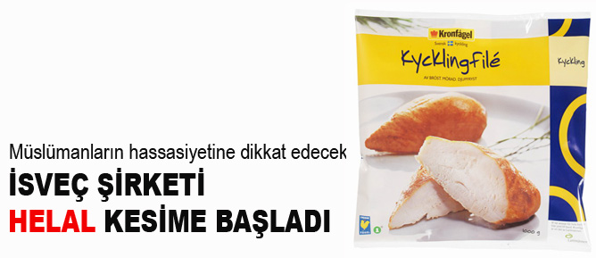 İsveç'in en büyük tavuk şirketlerinden Kronfågel, Müslümanların dini hassasiyetlerine göz önünde bulundurarak tavuk, hindi, ördek gibi kanatlı kümes hayvanlarının kesimini Müslümanlara yaptırtıyor. Müslümanların içinde bulunduğu bir enstitüden danışmanlık hizmeti alan şirket, helallikle ilgili kriterlere dikkat ederek kesimini gerçekleştiriyor, ‘helal damgalı' mallarını ülke çapında farklı marketlere dağıtıyor.