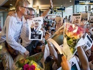 Gazze'nin en büyük hastanesi Şifa Hastanesi'nde çalışan Norveçli doktor Mads Gilbert, Oslo'da büyük bir topluluk tarafından karşılandı