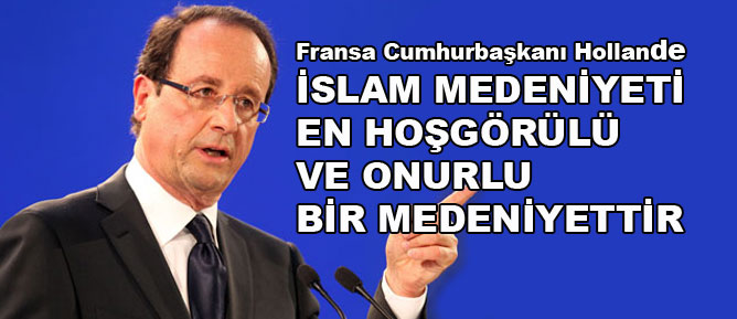 Fransa Cumhurbaşkanı François Hollande, "İslami medeniyet, onu suistimal edenlerin söylediğinin tersine, en eski, en yaşayan ve en hoşgörülü, onurlu bir medeniyettir" dedi.