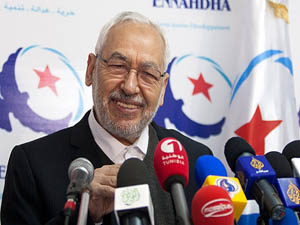 Uzun sürgün ve hapis yıllarından sonra ülkesine döndükten sonra seçimlerden galip çıkan partinin lideri olması hasebiyle başbakan olabilecekken o, tercihini Nahda Hareketi ve partisini yönetmekten yana koydu. Cumhurbaşkanlığına liberal demokrat, seküler bir ismi, bir insan hakları aktivisti Munsif Marzuki’yi önerdi. Meclis başkanlığı görevini ise sosyal demokrat Mustafa bin Cafer deruhte etti.